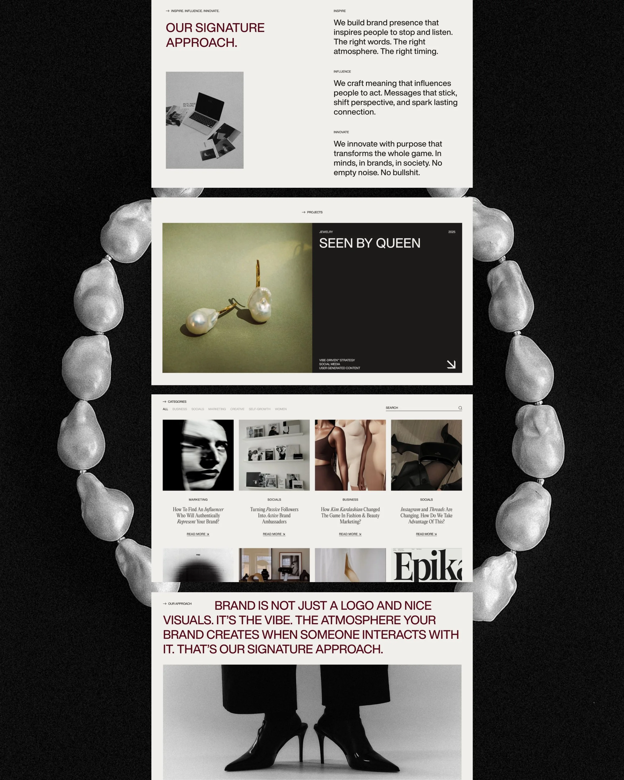 Logo design, Color curation, Typography suite, Image curation, Business cards, Socials, Web Design
